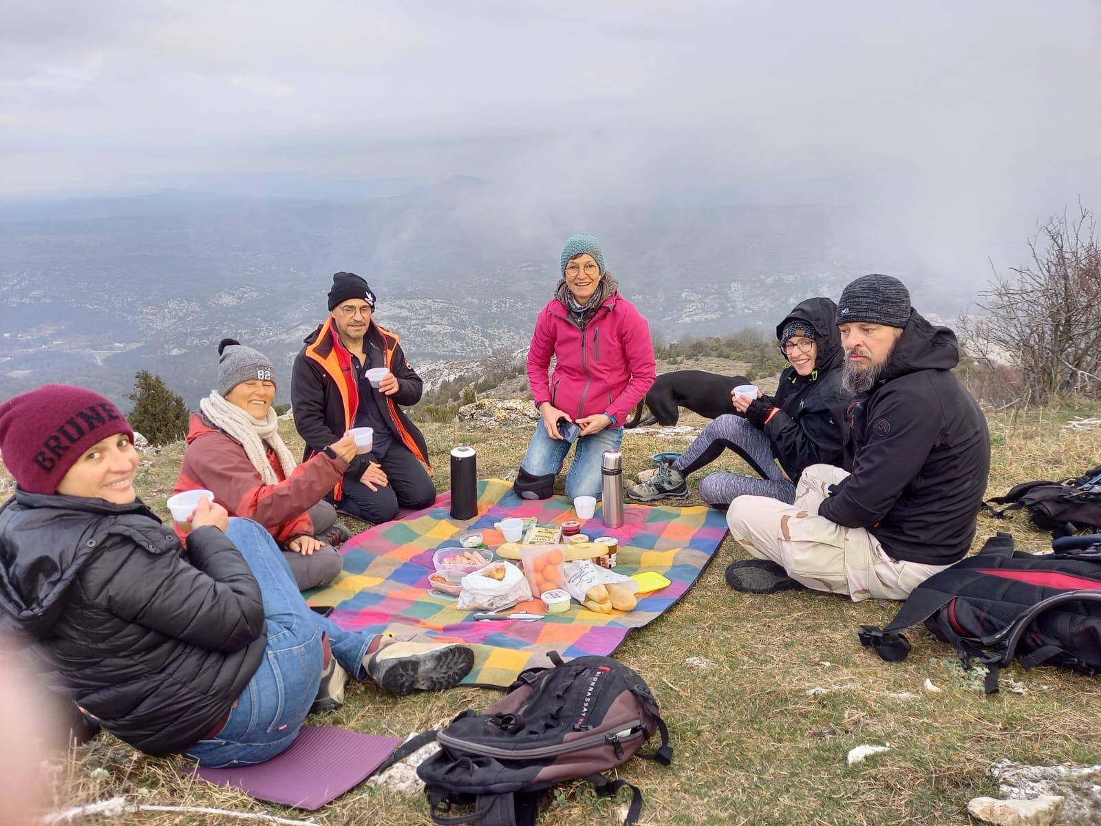 Petit déjeuner, version lunch, au sommet du Pic des Mouches.